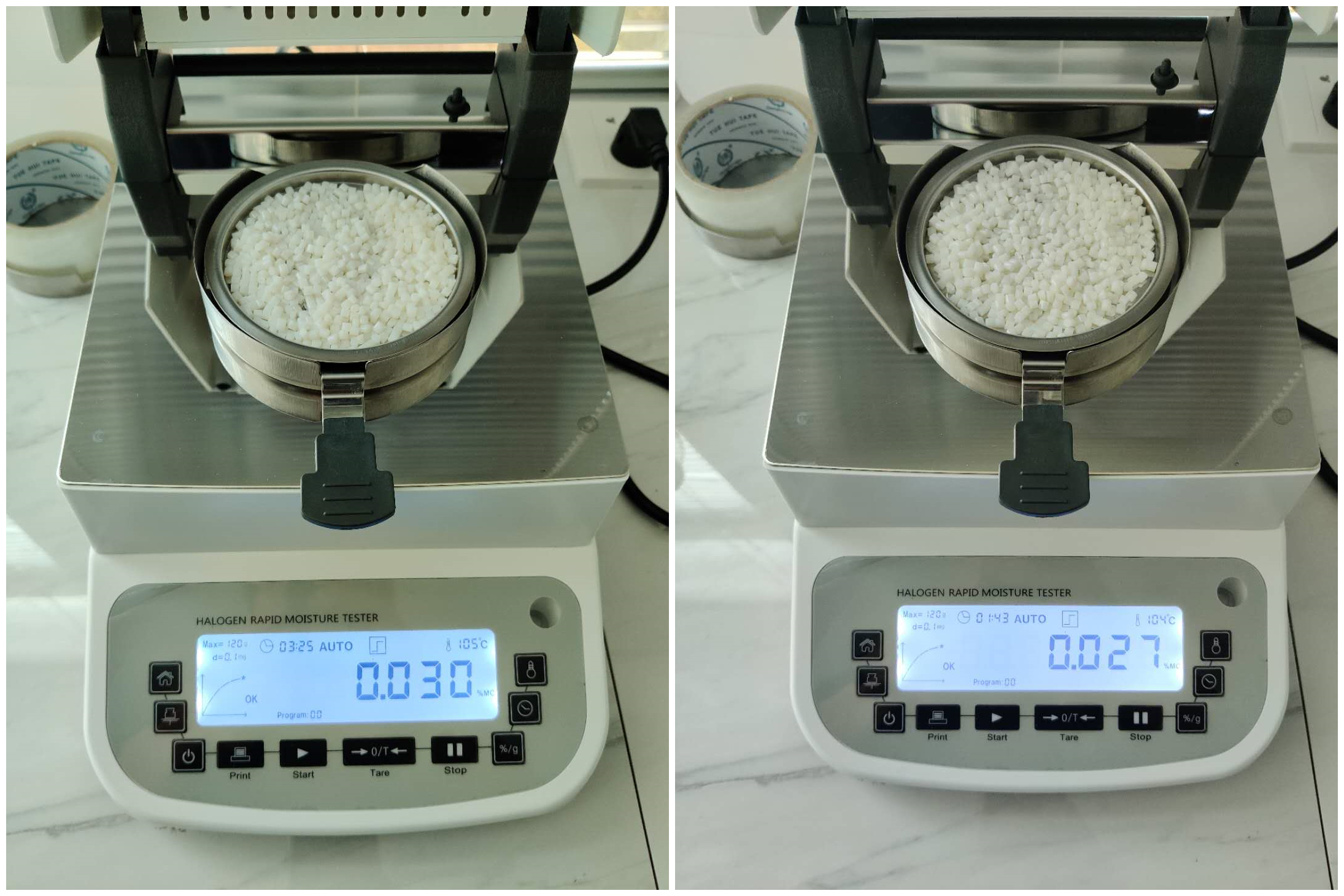 測試目的:水分含量是影響塑料加工工藝、產品外觀和產品特性的一個重要因素,在注塑過程中,如果使用含水量過高的塑料顆粒進行生產,會使最終產品出現開裂、反光、抗沖擊性能和拉伸強度降低等問題,影響產品質量。所以檢測塑料顆粒的水分是塑料生產過程中一道重要的步驟。