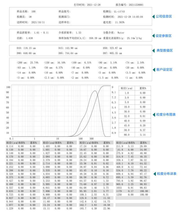 | 測試范圍 | 0.1μm -1250μm | |