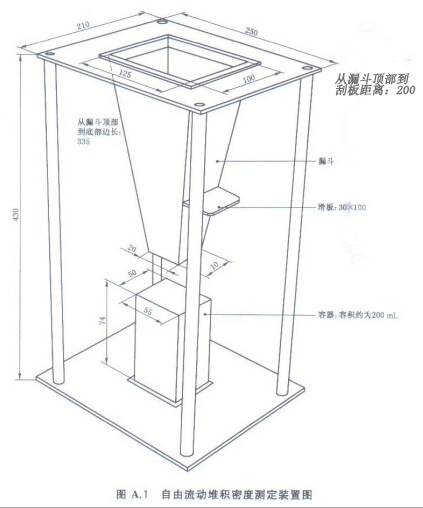 定義:自由流動堆積密度?free-flow?bulk?densities?:在規(guī)定條件下,自由地傾倒進(jìn)一個容器后的質(zhì)量與體積的比值,